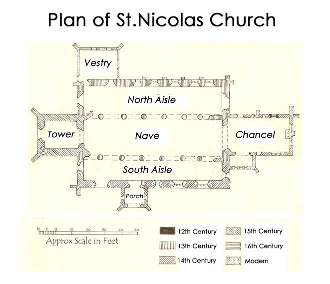 The early history of St Nicolas' has been lost to us, but archaeological evidence found during restoration work in the 1870s confirmed that its origins are Norman. There is no documentary evidence of a church on this site until the time of Henry III (1207-1272).
